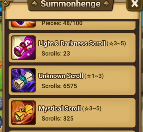 - *Light&Darkness Scrolls: 29-35(Quantity varies, at least 29 Light&Darkness Scrolls )